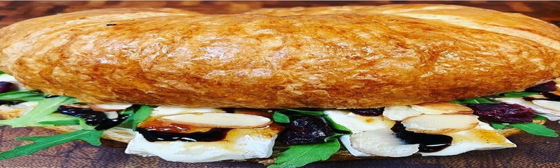Croissant, fig jam, camembert, sliced almonds, dried cranberries, arugula, butter, & balsamic glaze